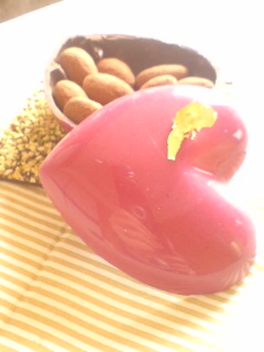 でもでも、ハート型のチョコの器に、アーモンドチョコがはいってるというトキメク組み合わせです。か、かわい…!