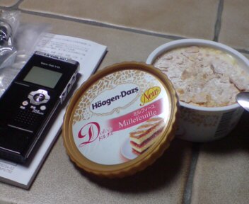 誕生日ってことで、父上がプレゼントくださるというので、かねてより欲しいなーと思っていたボイスレコーダーと、自分では買えない(笑)ハーゲンダッツのミルフィーユをリクエストwwwレコーダーはまだ使い方がさぱりですが、アイス…!うまっっっ……(震)!!お父様ありがとうしやわせです私(*´∇`*)